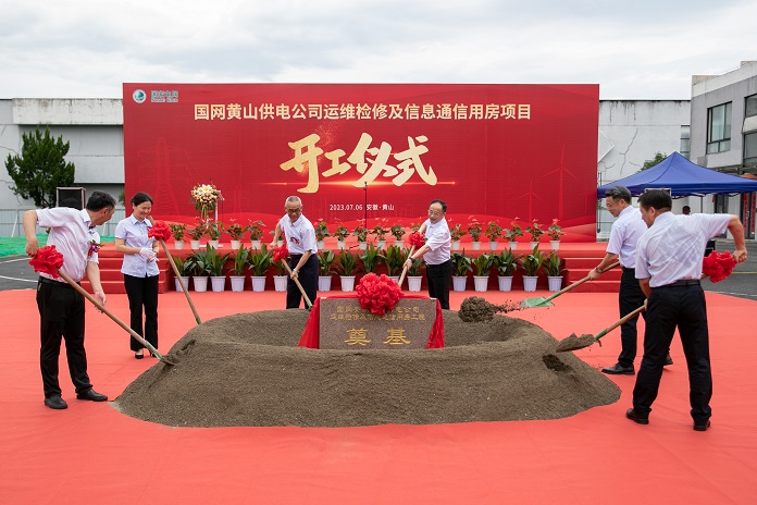 7月6日上午,國網黃山供電公司運維檢修及信息通用房項目奠基儀式在項目場地舉行,國網黃山供電公司總經理毛峰、黃山建工集團董事長項端陽、設計監理單位相關負責人和施工班組代表出席奠基儀式。