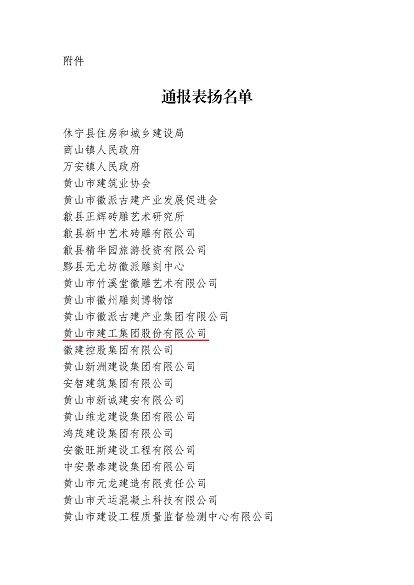 賡續傳承,以匠心營造未來 ——黃山建工集團榮獲通報表揚
